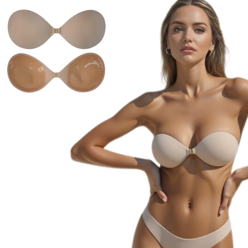 Hand-Brushed Glue Seamless Invisible Push-Up Front-Closure Adhesive Bra Everyday Lifting up Sticky Bras for Smaller Busts